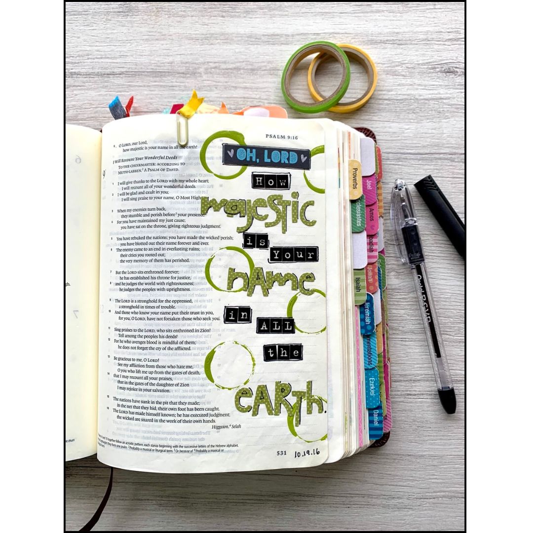 Sometimes, all it takes is a little creativity with words and typography to make your journaling pages pop. Experiment with different fonts, lettering styles, and text layouts to create visually appealing designs that highlight the beauty of God’s Word.