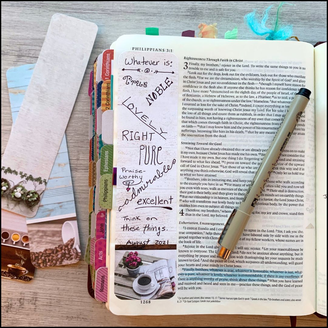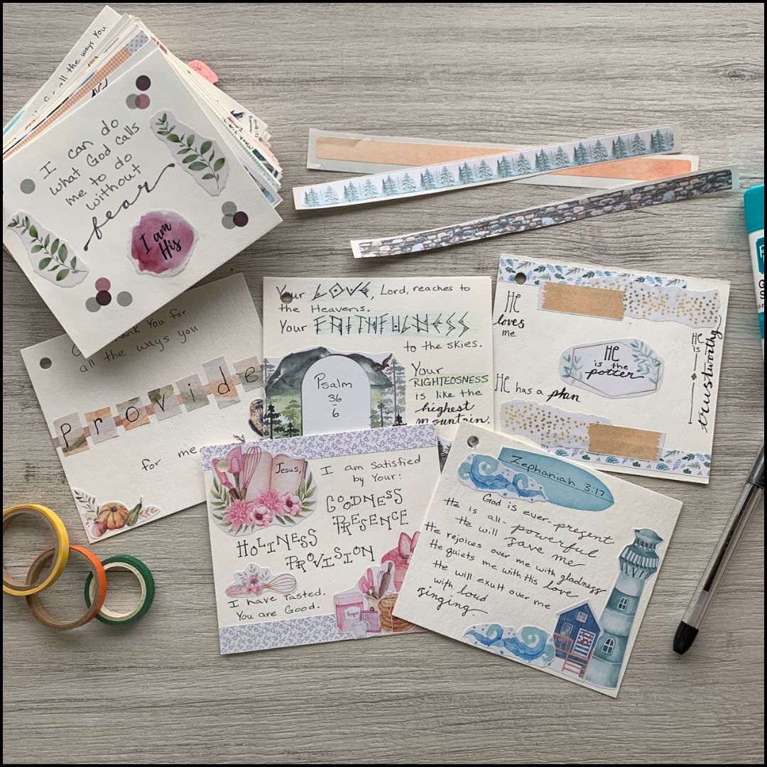 To get everything you need immediately at your fingertips, check out the Bible Journaling Idea kit to make it all quick and easy. It even includes 4 devotional/tutorial videos with each kit to keep you on track and growing each week.