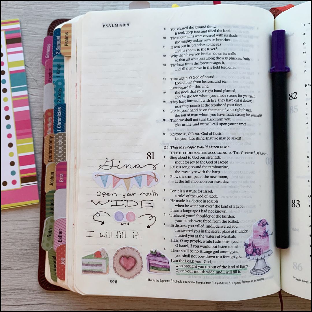 Whether you’re highlighting a verse with a cute sticker or framing a passage with colorful washi tape, the possibilities are endless. Try colorful alphabet stickers too—they’re a great way to add both color and meaningful content to your page.